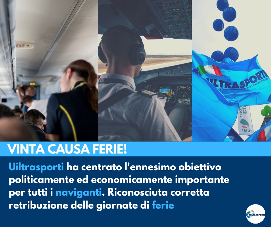 Roma, 15 gennaio 2021 – Cari Colleghi, nella giornata di oggi è stato pubblicato il primo dispositivo della sentenza sulla causa ferie che riconosce tutte le tesi della nostra Organizzazione sindacale. E’ stato accertato il diritto del personale navigante alla inclusione dell’IVO ai fini del calcolo della retribuzione da corrispondere per un giorno di ferie! […]